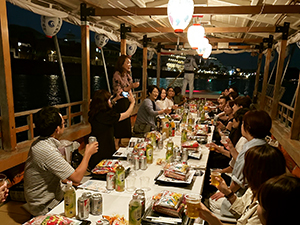 参加した職員らは所属の垣根を超えた交流を楽しみ、貸切船は大いに盛り上がっていました。