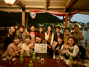 長良川鵜飼舟で親睦旅行の記念撮影 長良川鵜飼舟で親睦旅行の記念撮影