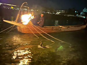 総がらみ(※)は今年も、鵜匠の掛け声、鵜が水に潜る羽音、篝火の熱などを感じられ、幻想的な光景は見ごたえ十分でした。