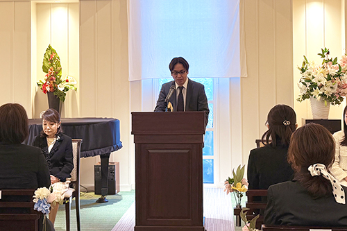 式では、株式会社羽島企画代表取締役 宇野恵利子社長、社会福祉法人恵母の会 宇野直司理事長、NPO法人Forsmile 佐野悦加理事長のあいさつ、幹部職員紹介と激励の言葉がありました。